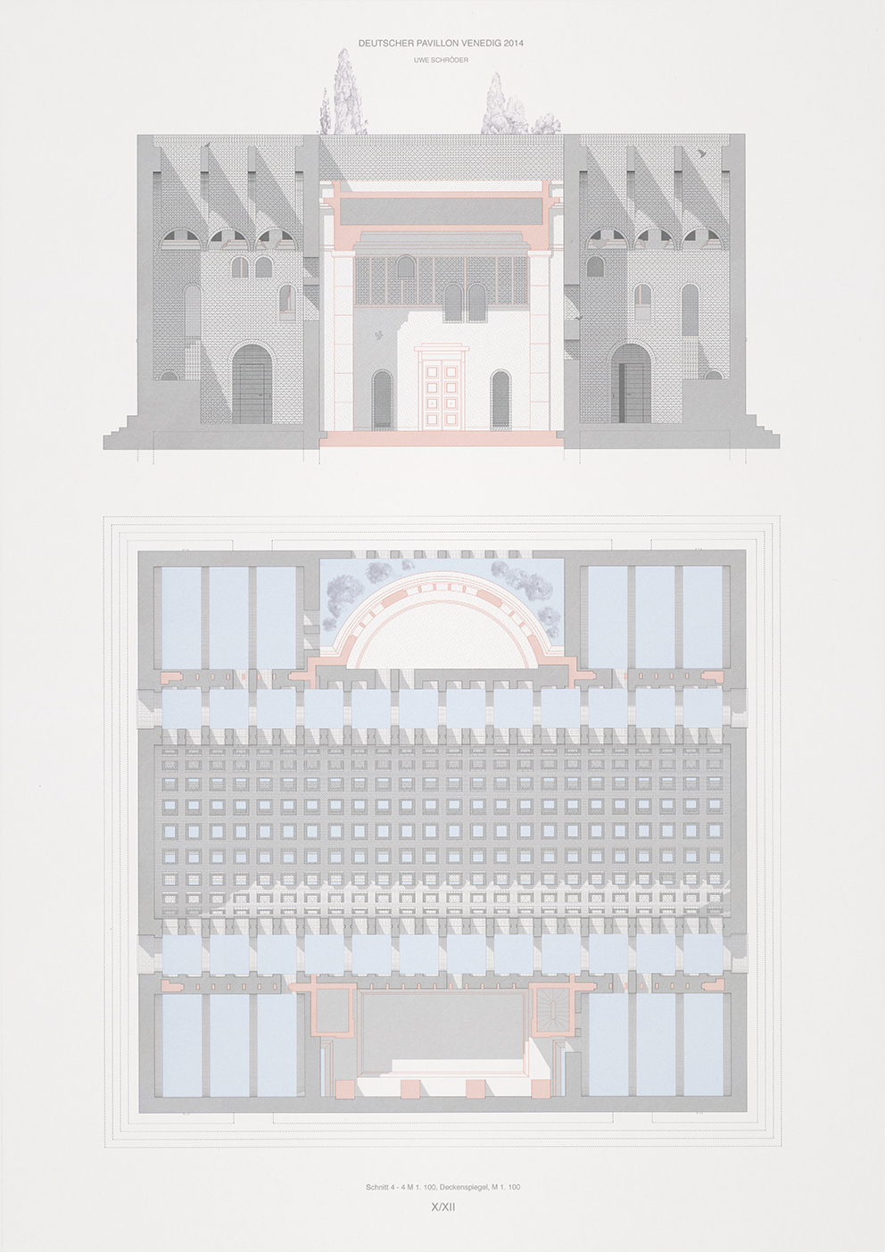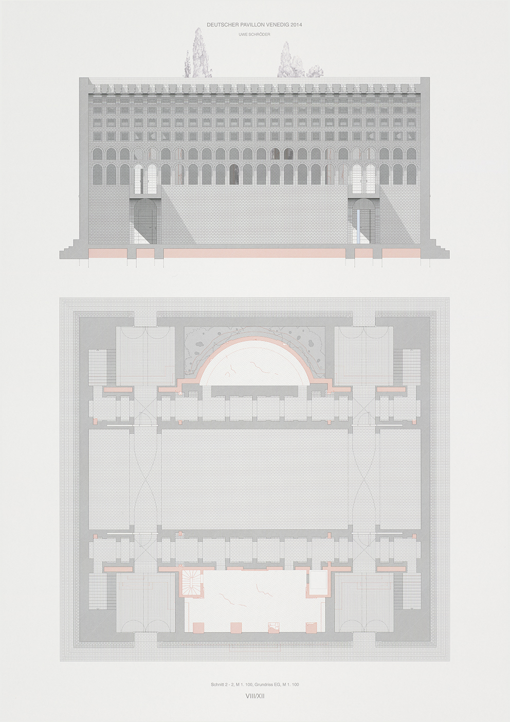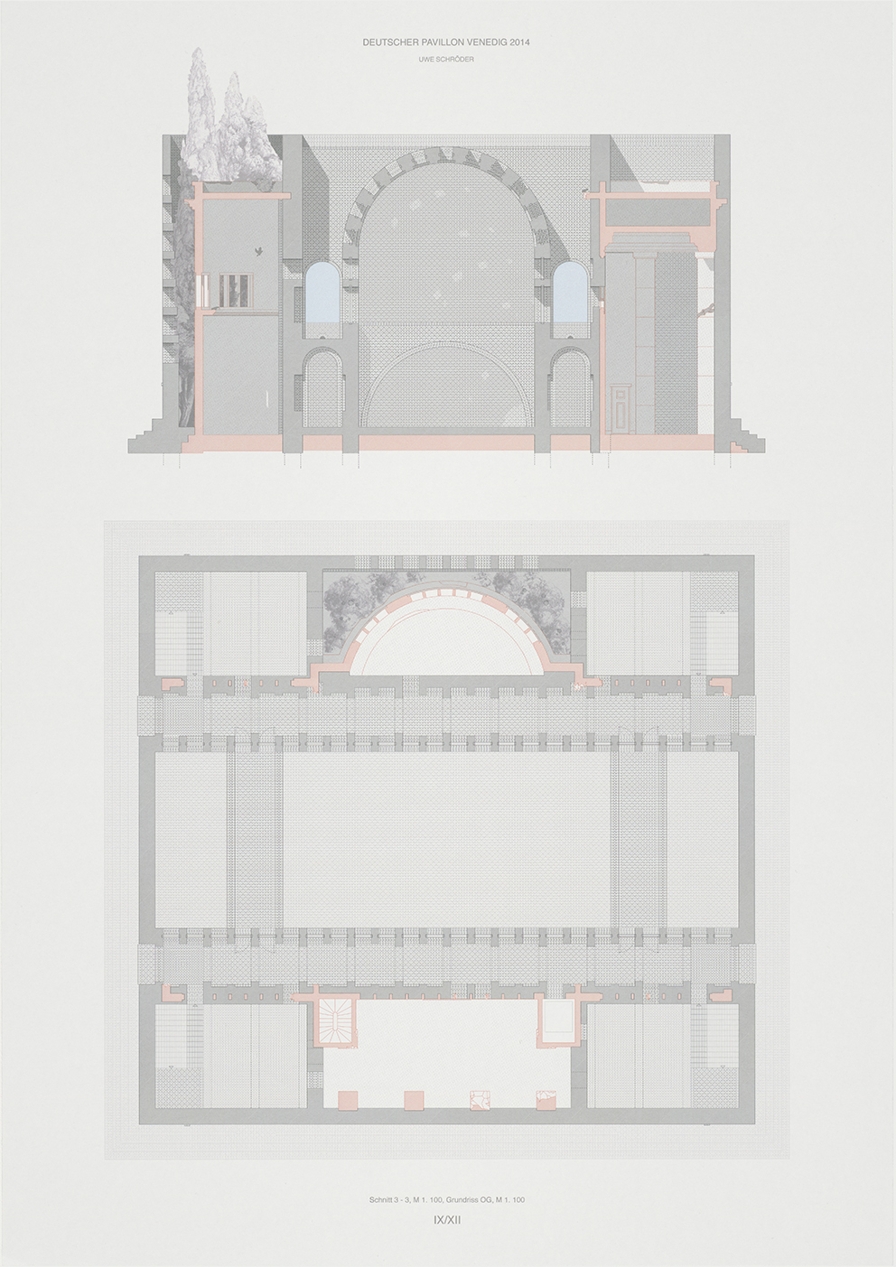 Beruhte der alte Pavillon auf dem Typus der Villa, so weist der Umbau mit Kernraum und Anräumen auf den Hof hin, im übertragenen Sinn also auf den städtischen Kontext eines Forums. Dass den Raum ein Gewölbe abdeckt, ändert an dieser typologischen Zuweisung nichts. Mit der gewandelten Hierarchie der Räume geht die neue Widmung des Pavillons als Raum der Begegnung und Veranstaltung einher.